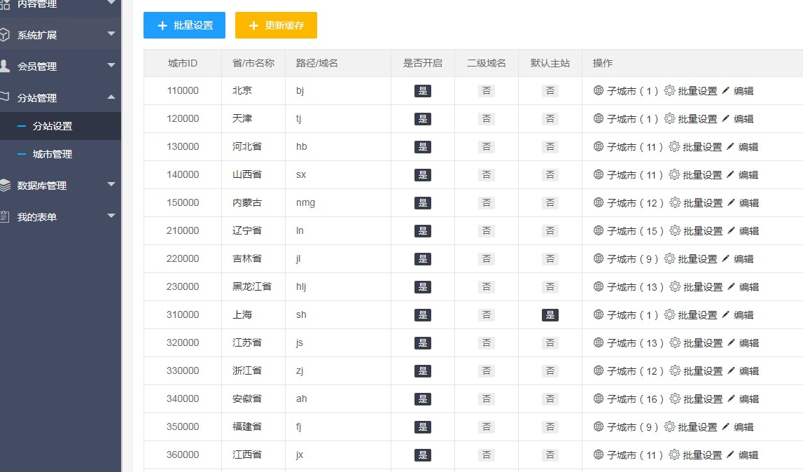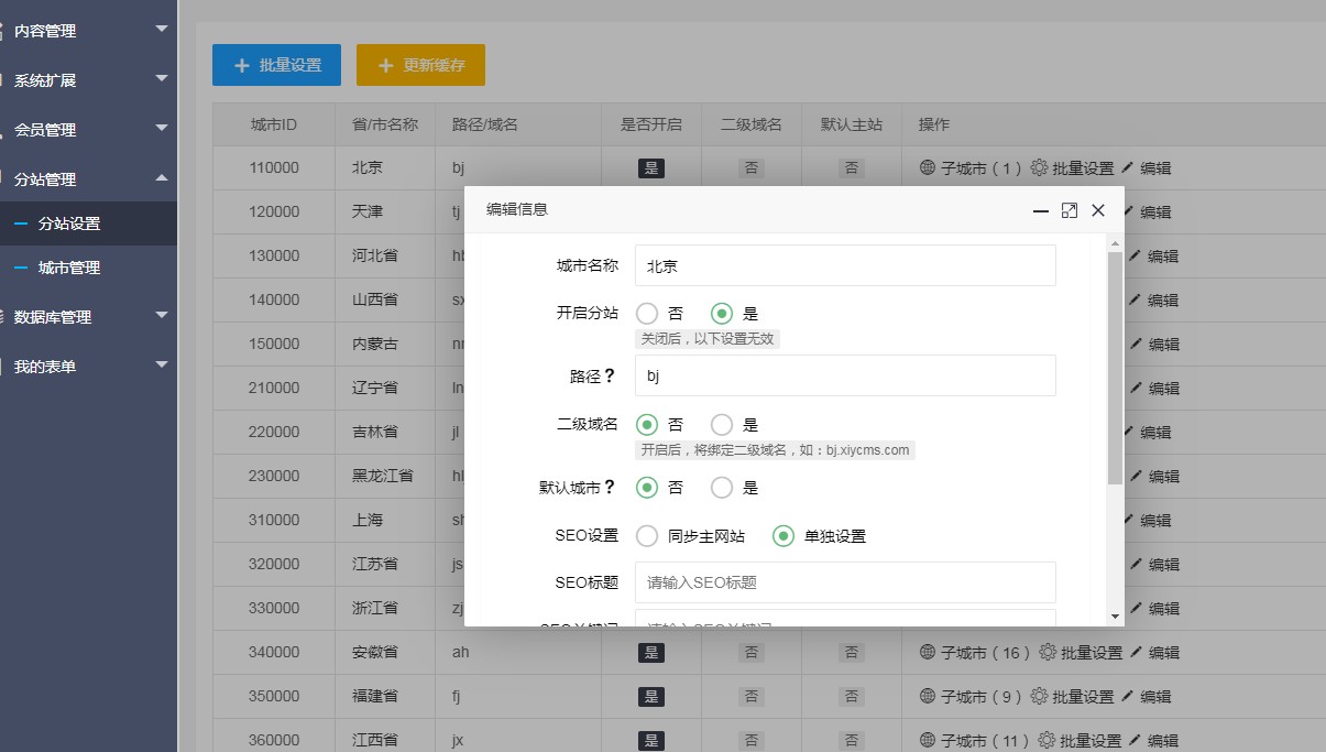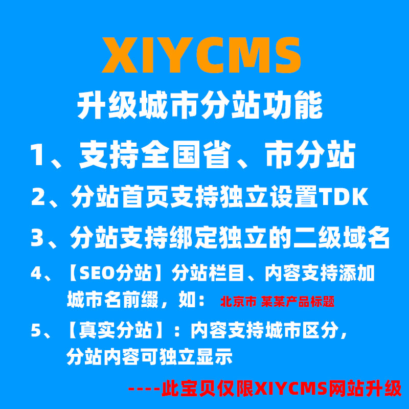 本服務僅限已購買XIYCMS系統模板的客戶購買,將您的模板升級后,將支持城市分站功能。