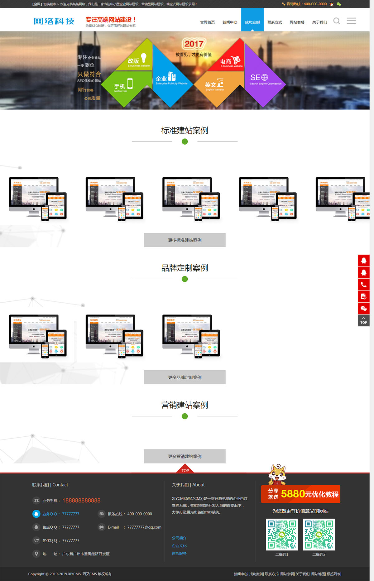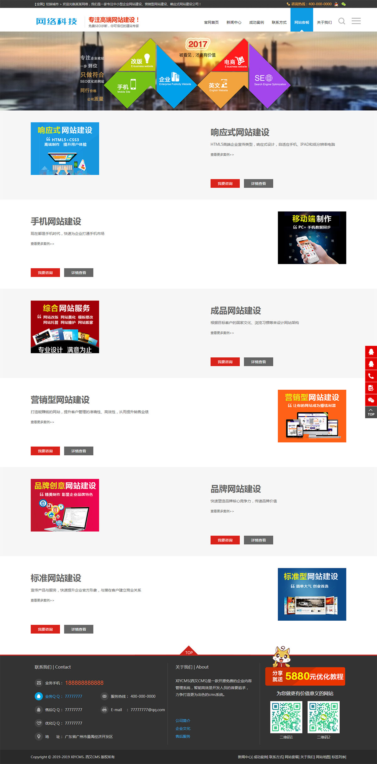 XIYCMS php網絡公司網站模板源碼 帶后臺 帶城市分站